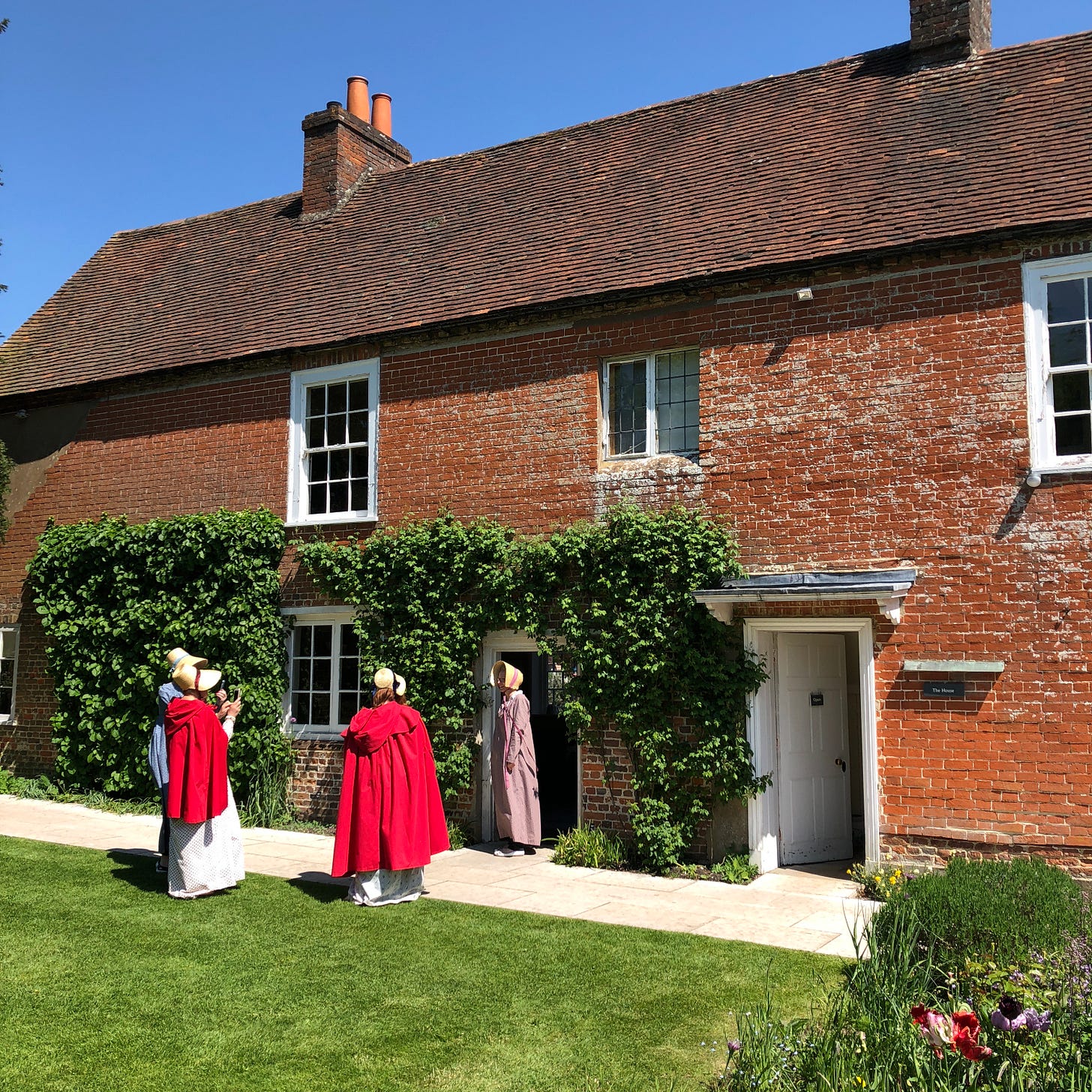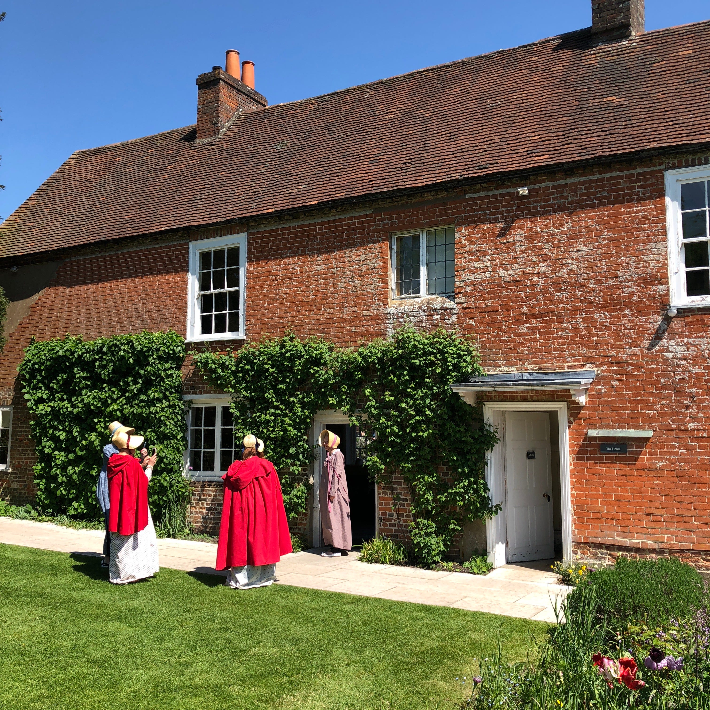 And so here we are, standing across the road from Chawton Cottage, watching young women in period clothes take selfies on their phones.